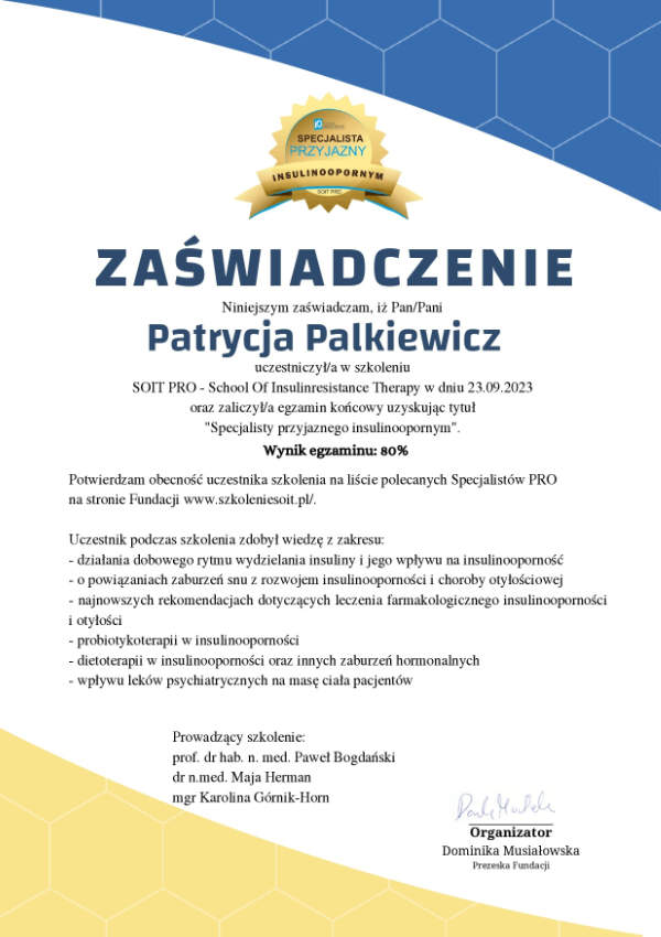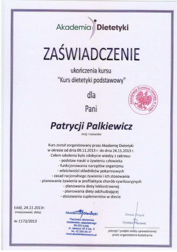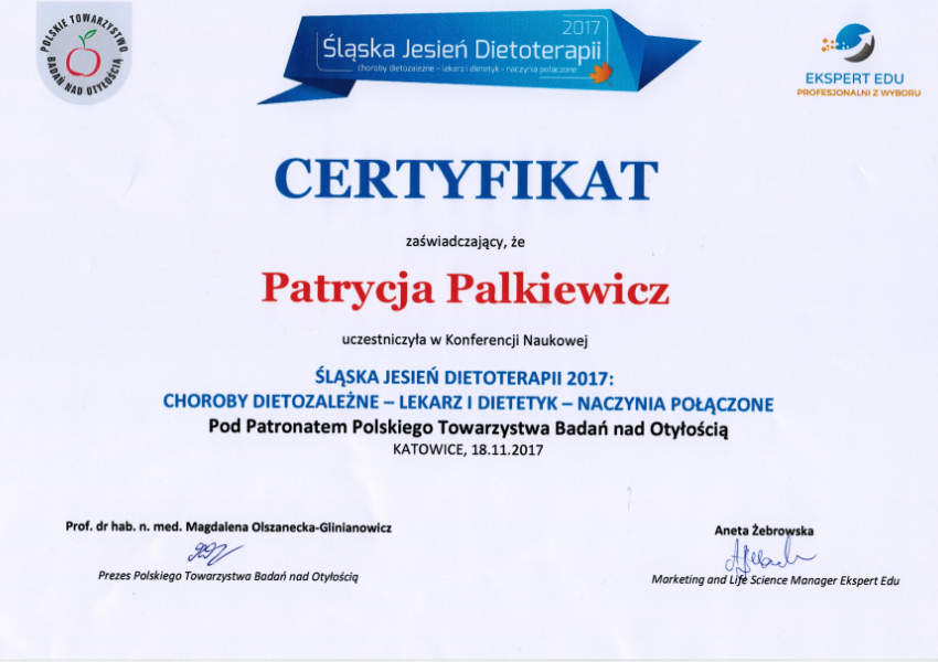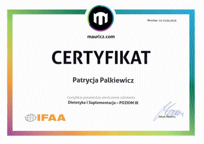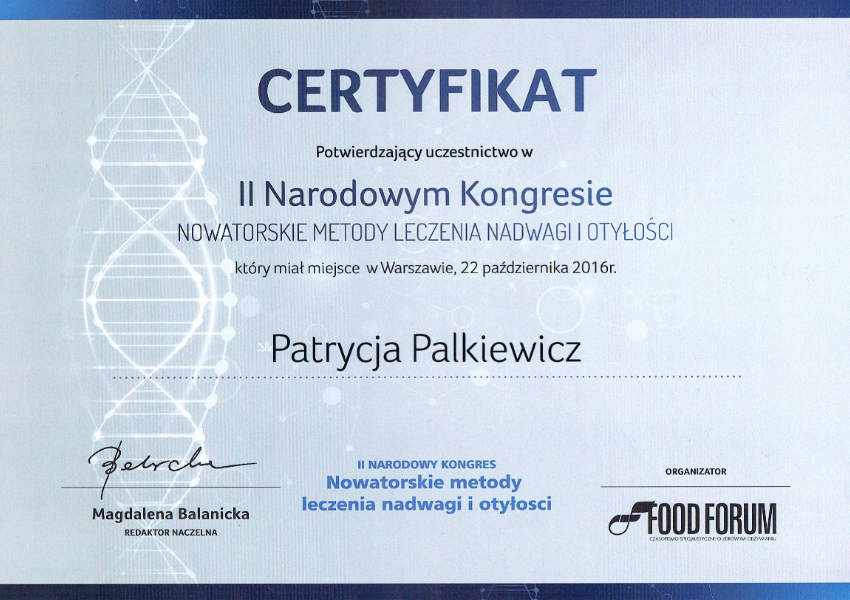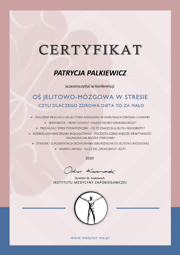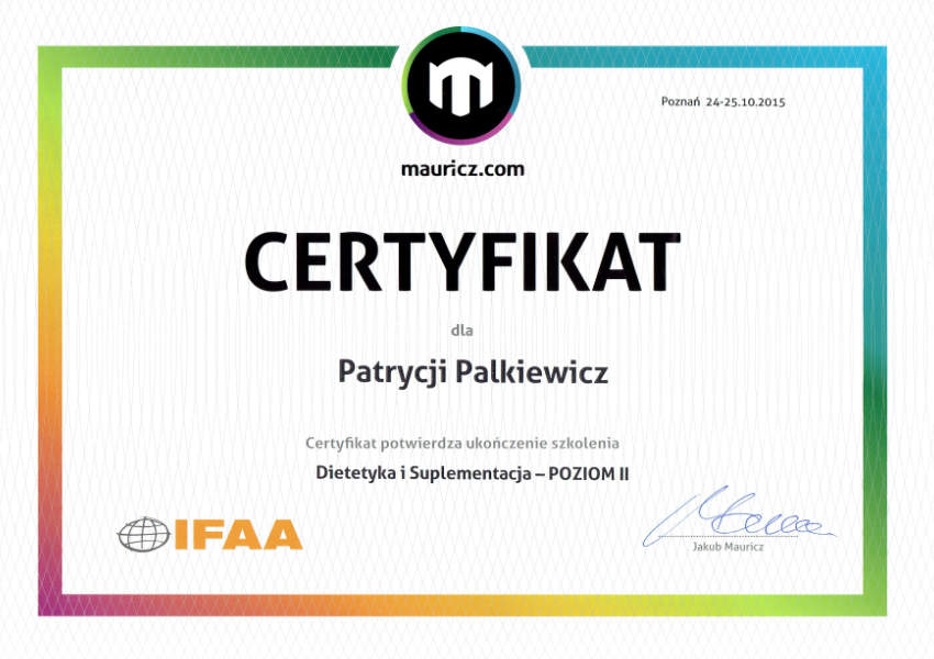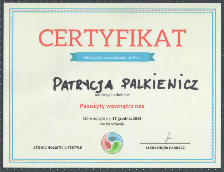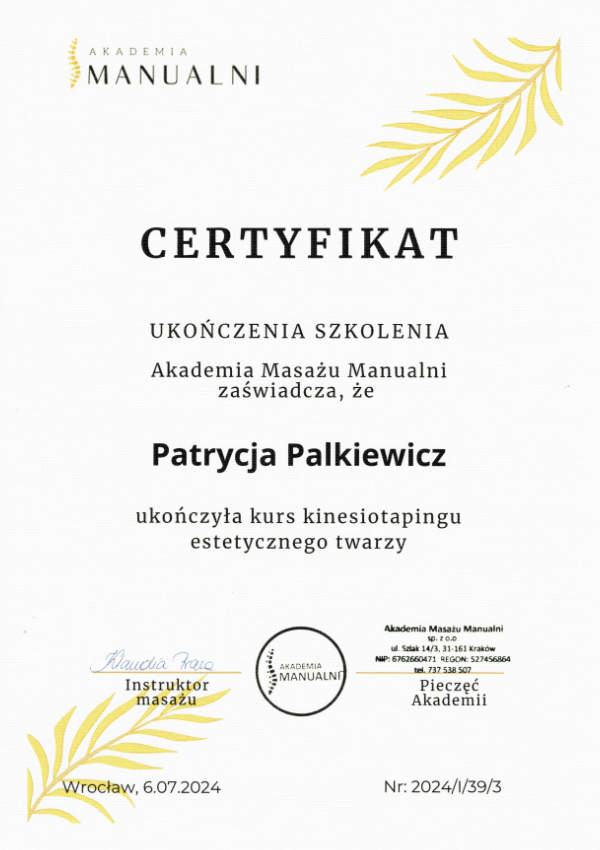 Jakość i kompleksowość mojej pracy to efekt nieustannej edukacji. Stale poszerzam wiedzę, by móc jeszcze lepiej wspierać moich klientów na ich drodze do zdrowia i dobrego samopoczucia.