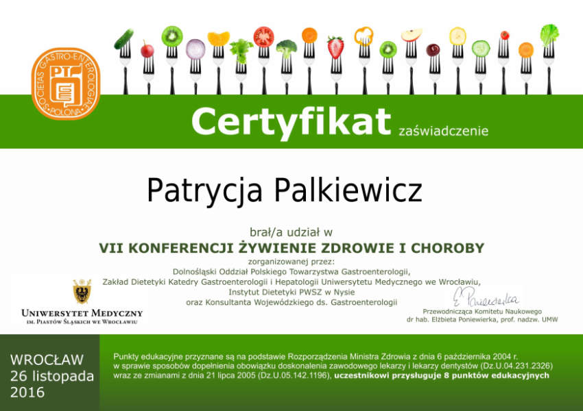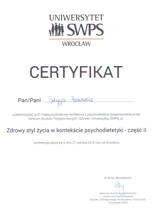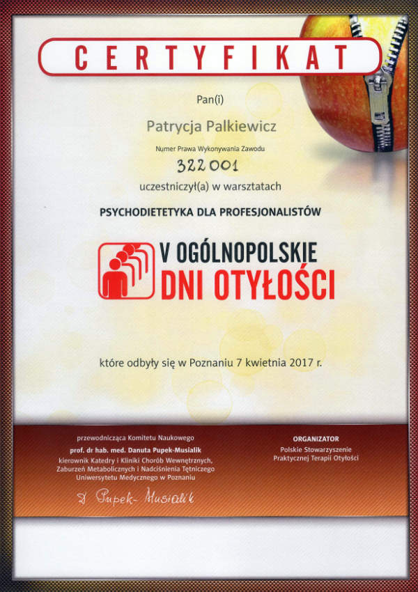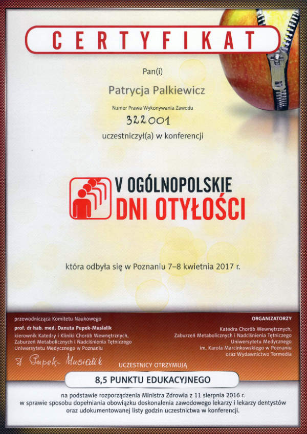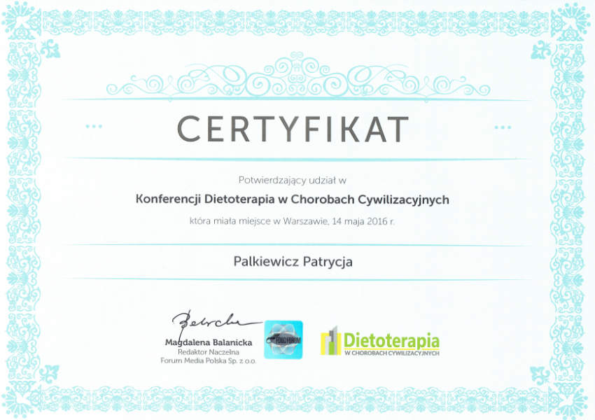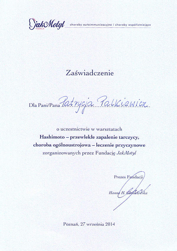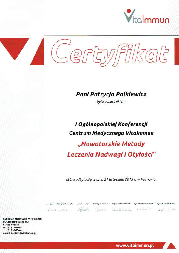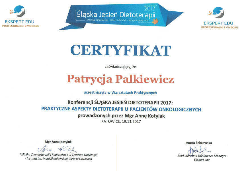 Jakość i kompleksowość mojej pracy to efekt nieustannej edukacji. Stale poszerzam wiedzę, by móc jeszcze lepiej wspierać moich klientów na ich drodze do zdrowia i dobrego samopoczucia.