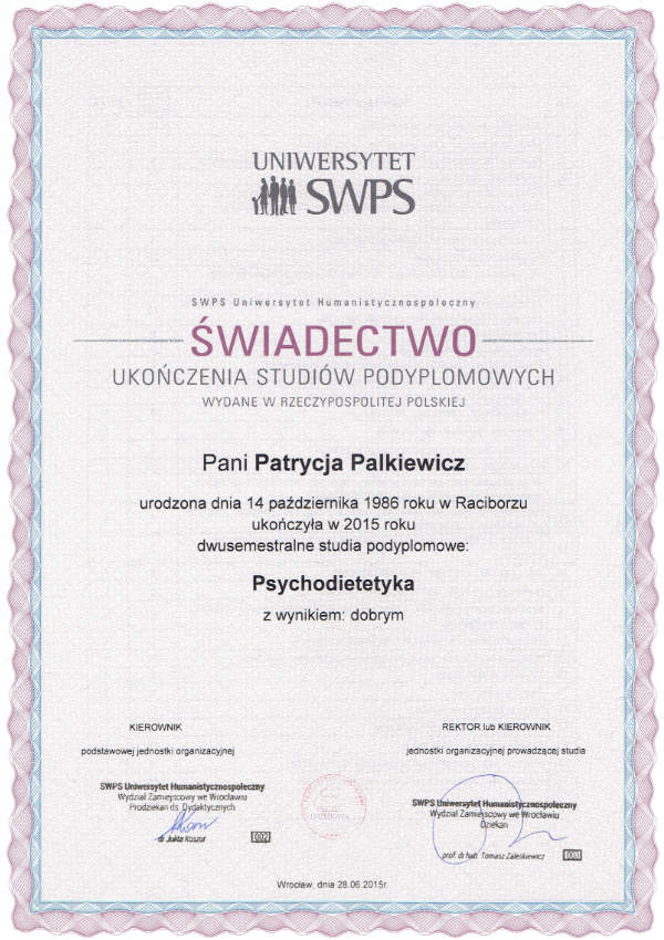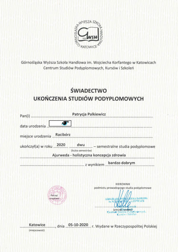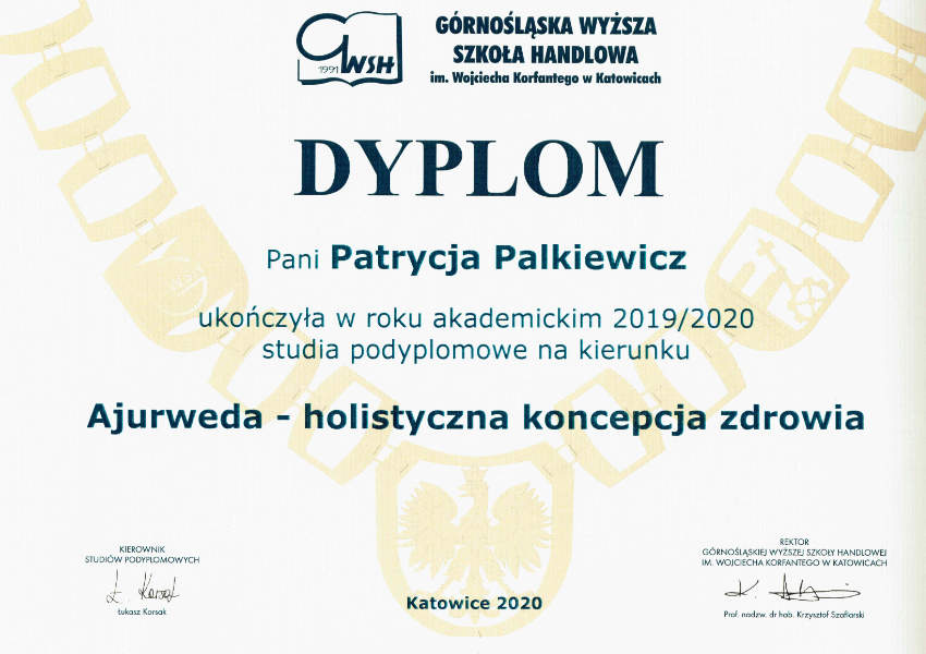 Mój głód wiedzy nie pozwala mi stać w miejscu. Oprócz studiów z kosmetologii, dietetyki i psychodietetyki, ukończyłam studia podyplomowe z holistycznej koncepcji zdrowia, które rozbudziły we mnie miłość do ajurwedy. Obecnie pogłębiam wiedzę na studiach z psychosomatyki i somatopsychologii, bo wierzę, że psyche i soma to jedność. Regularnie uczestniczę w szkoleniach i konferencjach, by być na bieżąco z najnowszą wiedzą i móc jeszcze lepiej pomagać moim klientom.
